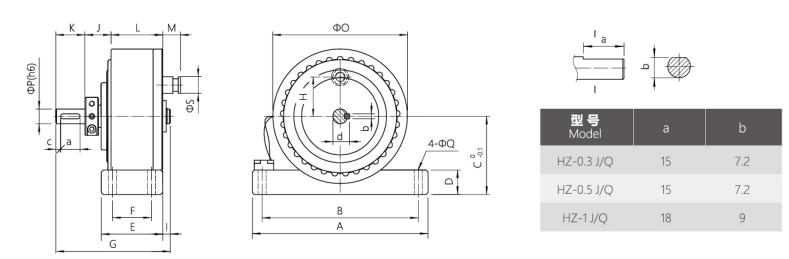 HZ-C右出軸磁滯制動器外形尺寸