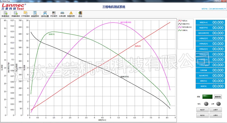 Function: display real-time voltage, current, motor power, torque, speed, efficiency data, waveforms of various motors, and generate curves and reports to save and print. |